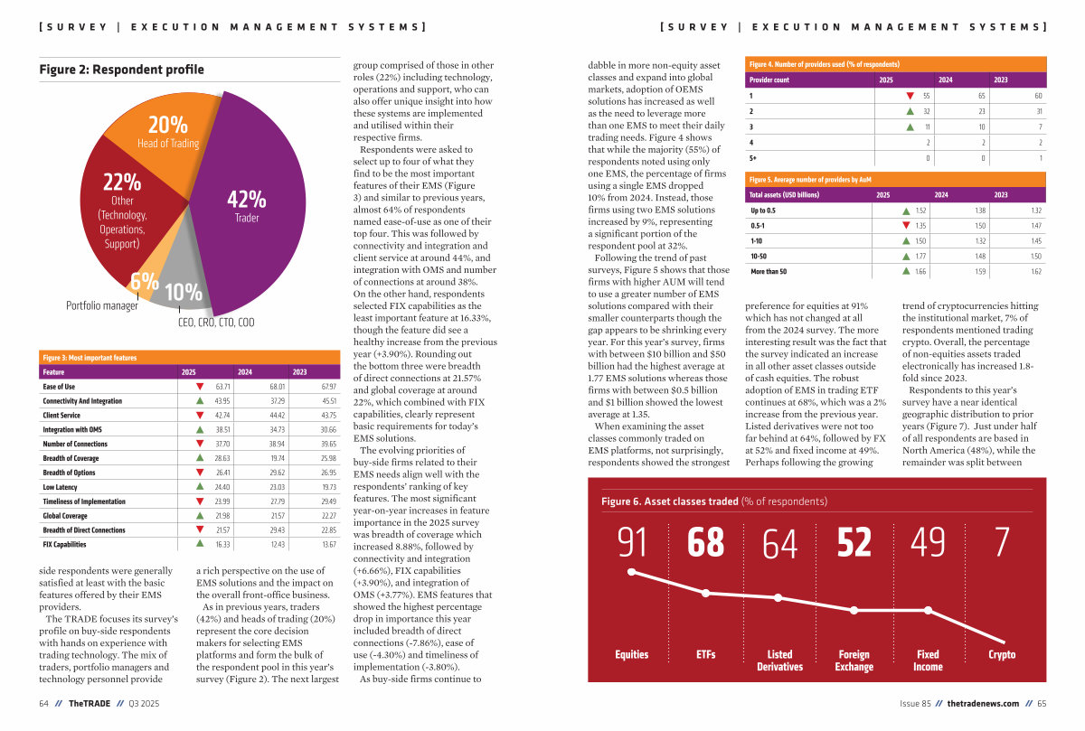 The TRADE focuses its survey’ s profile on buy-side respondents with hands on experience with trading technology. The mix of traders, portfolio managers and technology personnel provide