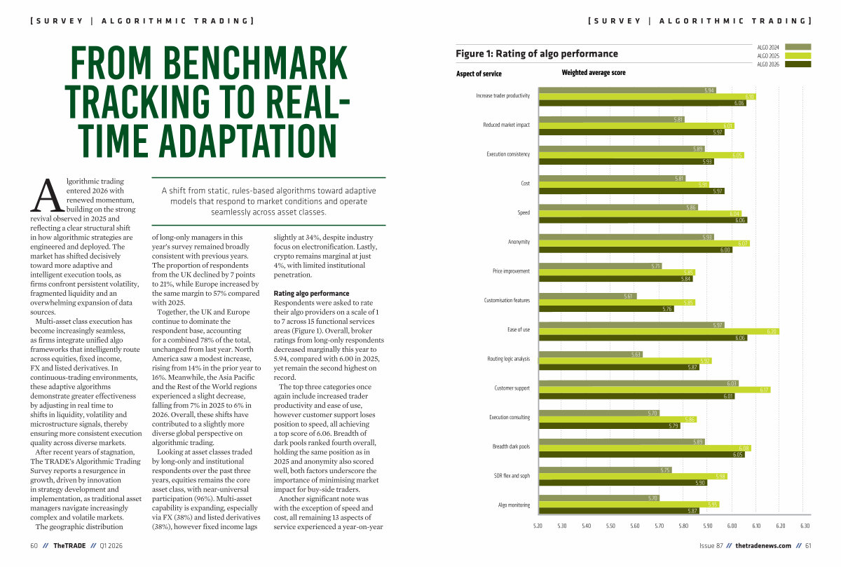 After recent years of stagnation, The TRADE’ s Algorithmic Trading Survey reports a resurgence in growth, driven by innovation in strategy development and implementation, as traditional asset managers navigate increasingly complex and volatile markets.
