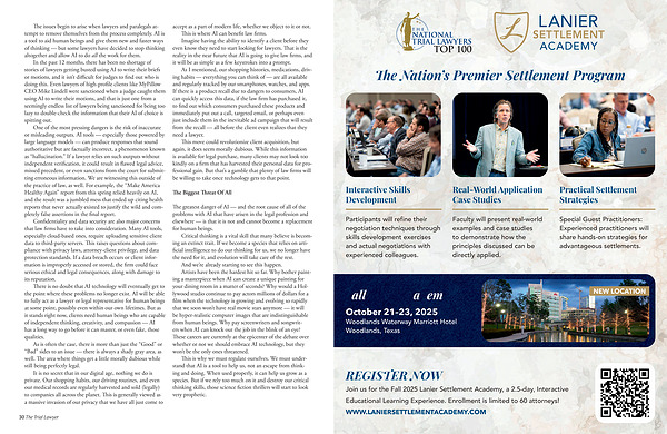 The greatest danger of AI— and the root cause of all of the problems with AI that have arisen in the legal profession and elsewhere— is that it is not and cannot become a replacement for human beings.