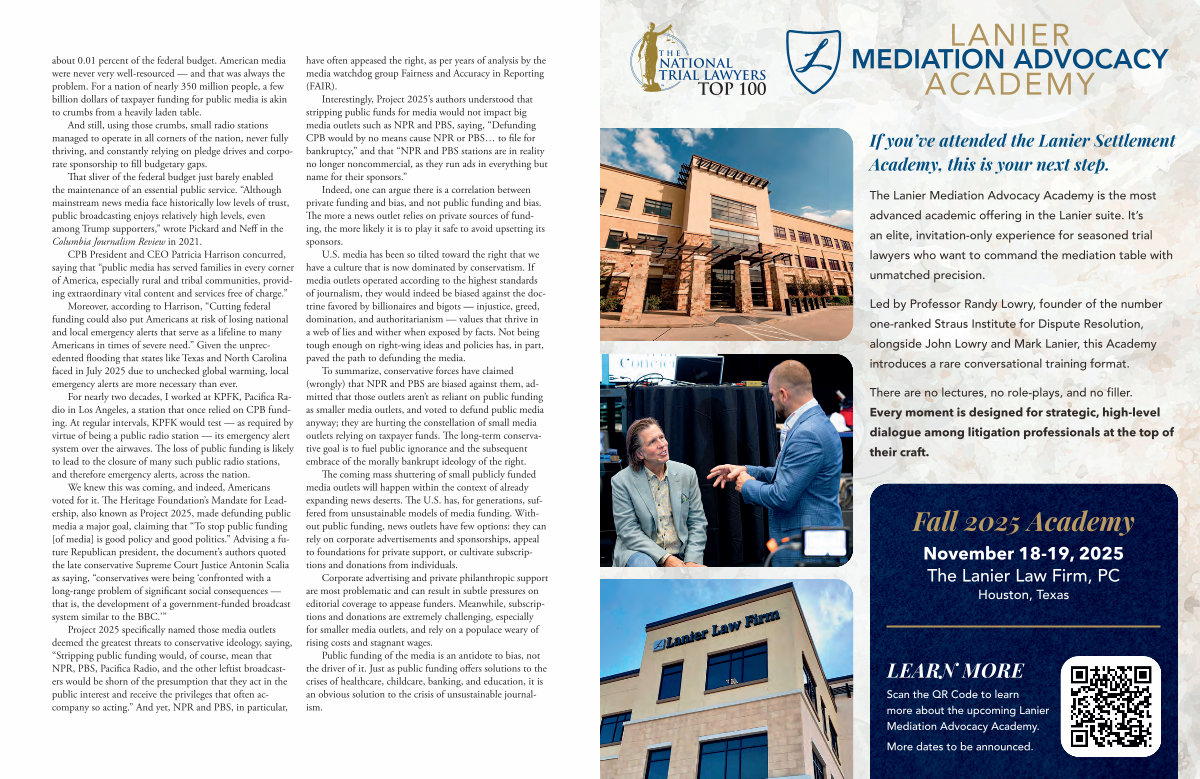 November 18-19, 2025 The Lanier Law Firm, PC Houston, Texas