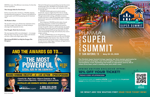 In short, PILMMA helps you turn disruption into opportunity. I encourage you to join us at this year’ s PILMMA SUPER SUMMIT in San Antonio, Texas, May 20 – 23, 2026, designed specifically for law firm owners, to help you prepare for, and overcome today’ s biggest challenges and opportunities, including the latest AI hot topics.