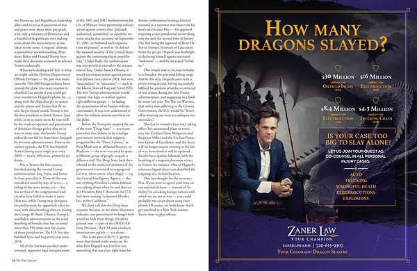 All of this has been justified under tortured, expansive legal interpretations of the 2001 and 2002 Authorizations for Use of Military Force permitting military action against entities that“ planned, authorized, committed, or aided the terrorist attacks that occurred on September 11, 2001, or harbored such organizations or persons” as well as“ to defend the national security of the United States against the continuing threat posed by Iraq.” Under Bush, the authorization was interpreted to extend to the occupation of Iraq. Under Barack Obama, it would encompass action against groups that did not even exist in 2001, but were“ descendants” or“ successors”— such as the Islamic State of Iraq and Syria( ISIS). The first Trump administration would expand that logic to warfare against eight different groups— including the assassination of an Iranian military commander. It was now understood to allow for military actions anywhere on the globe.