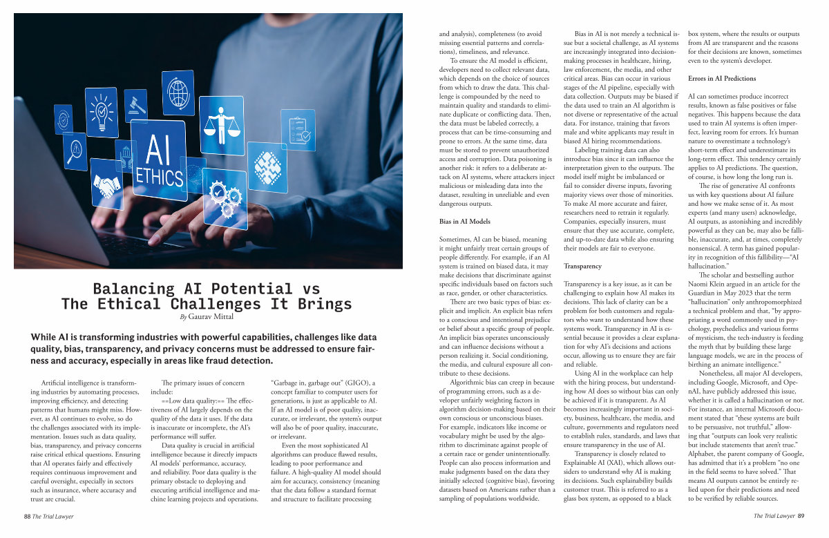 Transparency is a key issue, as it can be challenging to explain how AI makes its decisions. This lack of clarity can be a problem for both customers and regulators who want to understand how these systems work. Transparency in AI is essential because it provides a clear explanation for why AI’ s decisions and actions occur, allowing us to ensure they are fair and reliable.