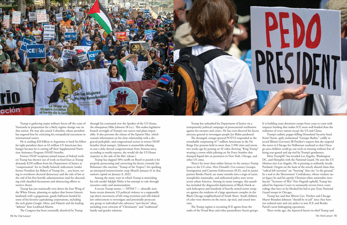Trump has said that Illinois Gov. Pritzker and Chicago Mayor Brandon Johnson“ should be in jail” since they have not ordered state and city police to join ICE and Border Patrol’ s racist kidnapping operations.
