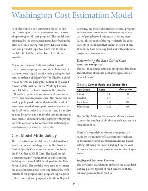 Ratio and Group Size The cost model uses ratio and group size data from Washington ’ s child care licensing regulations as detailed below .