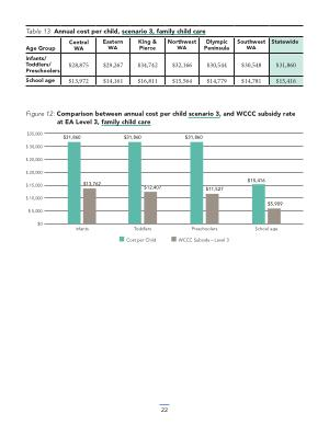 Figure 12 : Comparison between annual cost per child scenario 3 , and WCCC subsidy rate at EA Level 3 , family child care