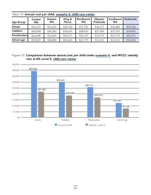 Figure 13 : Comparison between annual cost per child under scenario 4 , and WCCC subsidy rate at EA Level 5 , child care center