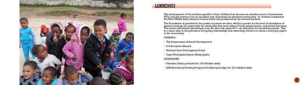 ECD, and has proven to be an excellent way of growing an educated community. 51 mothers completed