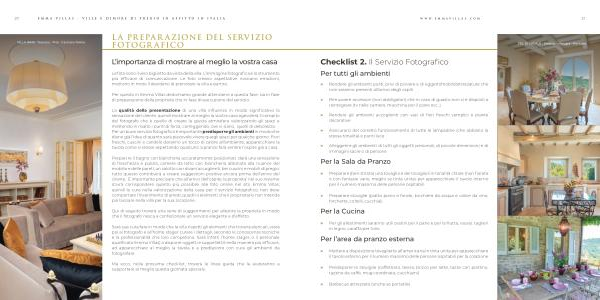 Sarà sua cura fare in modo che la villa rispetti gli elementi che troverà elencati , starà poi al fotografo e all ’ home stager curare i dettagli , secondo le conoscenze tecniche e la professionalità che loro competono . Sarà infatti l ’ home stager , o il personale qualificato Emma Villas ) a disporre oggetti e suppellettili nella maniera più efficace , ad apparecchiare al meglio la tavola e a predisporre con cura gli ambienti da fotografare .