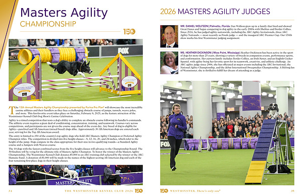 MR. DANIEL WOLFSON | Palmetto, Florida. Dan Wolfson grew up in a family that bred and showed Great Danes and began competing in dog agility in the early 2000s with Shelties and Border Collies. Since 2016, he has judged agility nationwide, including the AKC Agility Invitationals, three AKC Agility Nationals— most recently as Finals judge— and the inaugural AKC Premier Cup. Our 150th show marks his first Westminster judging assignment.