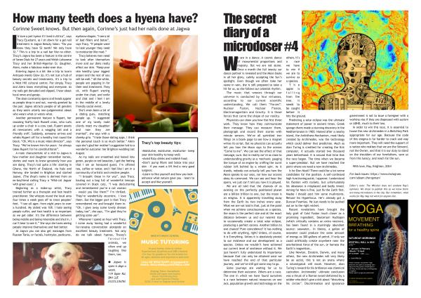 Whenever I spend an hour with Tracy , I come away having had a wonderful far-ranging conversation alongside an excellent beauty treatment . Not only do we talk about hyenas , Tracey ’ s favourite animals , we often end up laughing like them , too .