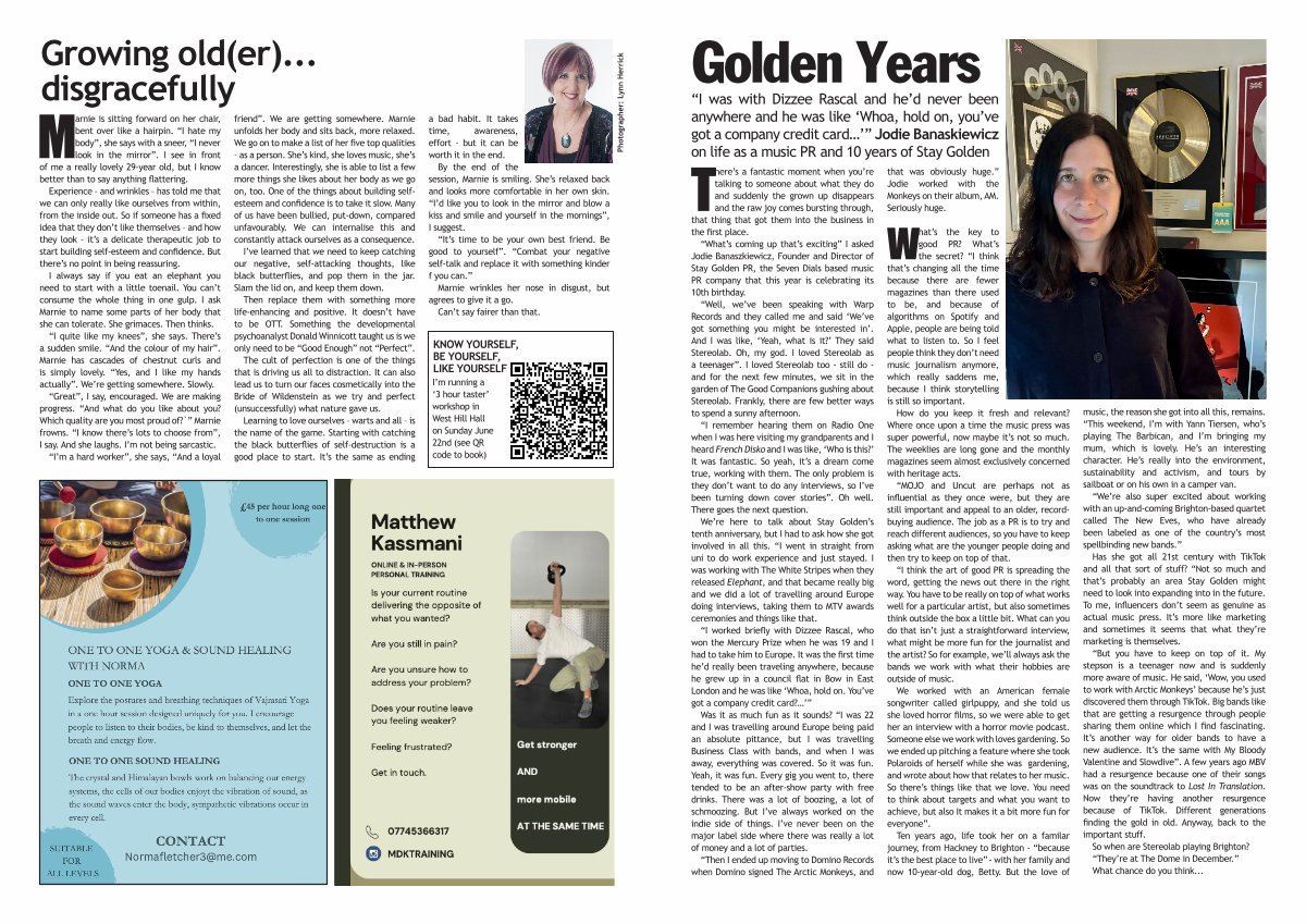 “ But you have to keep on top of it. My stepson is a teenager now and is suddenly more aware of music. He said,‘ Wow, you used to work with Arctic Monkeys’ because he’ s just discovered them through TikTok. Big bands like that are getting a resurgence through people sharing them online which I find fascinating. It’ s another way for older bands to have a new audience. It’ s the same with My Bloody Valentine and Slowdive”. A few years ago MBV had a resurgence because one of their songs was on the soundtrack to Lost In Translation. Now they’ re having another resurgence because of TikTok. Different generations finding the gold in old. Anyway, back to the important stuff. So when are Stereolab playing Brighton?“ They’ re at The Dome in December.” What chance do you think...