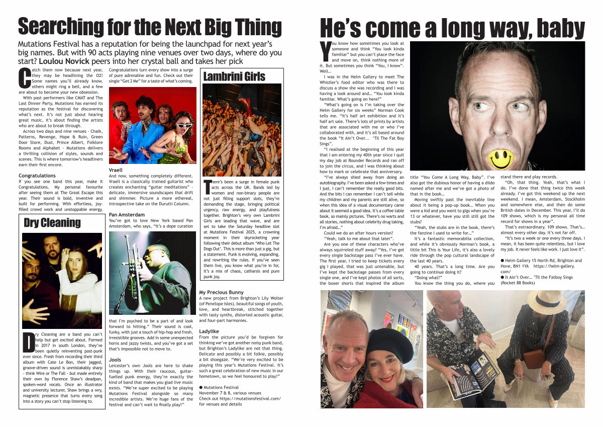 Across two days and nine venues- Chalk, Patterns, Revenge, Hope & Ruin, Green Door Store, Dust, Prince Albert, Folklore Rooms and Alphabet- Mutations delivers a thrilling collision of styles, sounds and scenes. This is where tomorrow’ s headliners earn their first encore.
