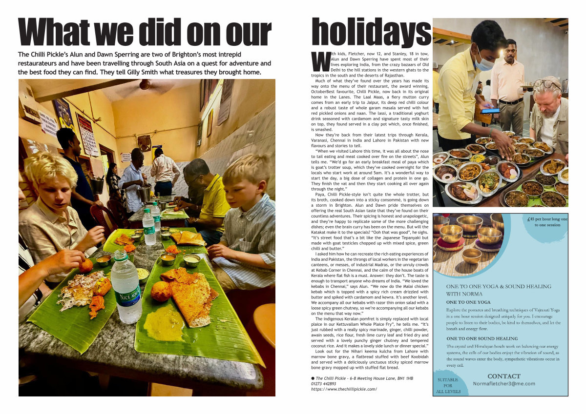 The Chilli Pickle’ s Alun and Dawn Sperring are two of Brighton’ s most intrepid restaurateurs and have been travelling through South Asia on a quest for adventure and the best food they can find. They tell Gilly Smith what treasures they brought home.