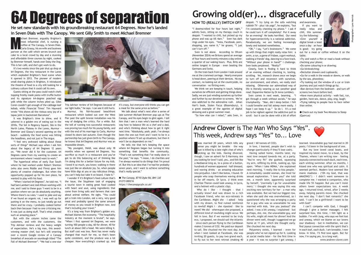“ So how else can I relax?,” asks Sven, in despair.“ I try lying on the sofa watching rubbish TV- plus I do yoga”, he explains,“ but I’ m constantly checking my phone.” I ask if he could turn it off completely? Put it away for an evening? He looks horrified. Our need for hyperconnectivity is a national addiction. Paradoxically, we are feeling increasingly lonely and isolated nonetheless.