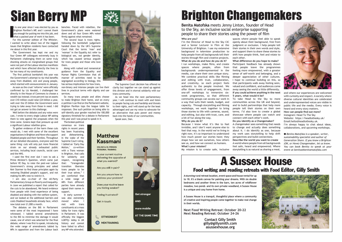 It is one year since I was elected by you as Brighton Pavilion’ s MP, and I cannot thank you enough for putting me into this job, and what a packed year of work it has been. For this summer edition of The Whistler, I wanted to write about two of the biggest issues that Brighton residents have contacted me about in this first year.