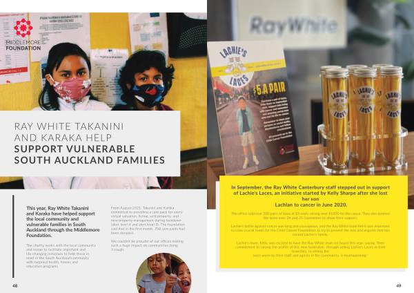 In September , the Ray White Canterbury staff stepped out in support of Lachie ’ s Laces , an initiative started by Kelly Sharpe after she lost her son Lachlan to cancer in June 2020 .