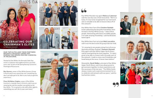 OUR TOP ELITES AND THEIR PARTNERS RECENTLY ENJOYED LADIES DAY DURING THE SPRING RACING CARNIVAL IN MELBOURNE .