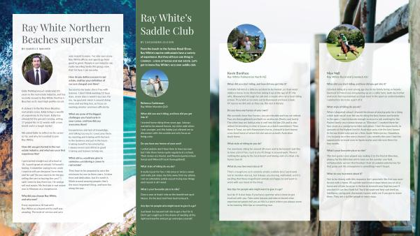From the beach to the Sydney Royal Show , Ray White ’ s equine enthusiasts have a variety of experience . But they all have one thing in common - a love of horses and real estate . Let ’ s get to know Ray White ’ s very own saddle club .