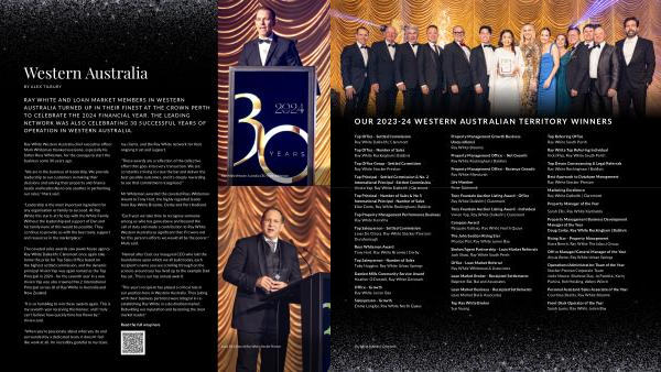 RAY WHITE AND LOAN MARKET MEMBERS IN WESTERN AUSTRALIA TURNED UP IN THEIR FINEST AT THE CROWN PERTH TO CELEBRATE THE 2024 FINANCIAL YEAR . THE LEADING NETWORK WAS ALSO CELEBRATING 30 SUCCESSFUL YEARS OF OPERATION IN WESTERN AUSTRALIA .