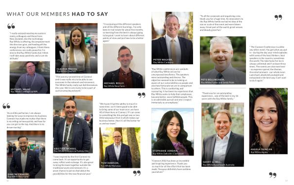 “ Ray White conferences are symbolic of what Ray White strives for - unsurpassed excellence . The speakers were outstanding and diverse . The objective seemed to be in making us aware of our vulnerabilities as people and also how fortunate we are in comparison to others . This is comforting and reassuring . It has been my experience that Ray White seeks to help their employees become better , more fulfilled people . This is an admirable pursuit and one I respect immensely as an employee .”