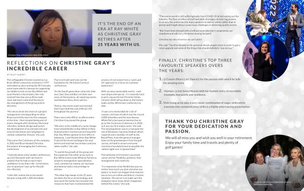 IT ’ S THE END OF AN ERA AT RAY WHITE AS CHRISTINE GRAY RETIRES AFTER 25 YEARS WITH US .