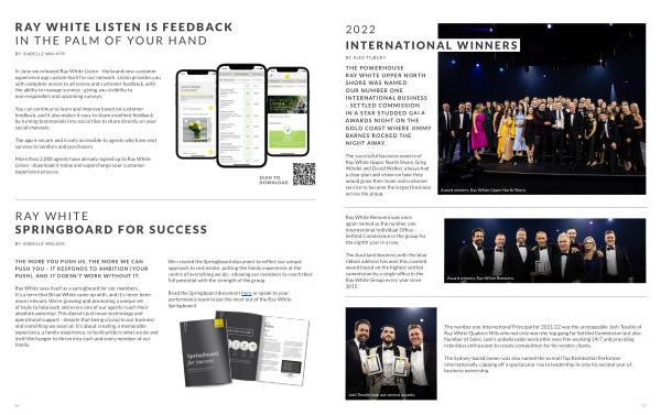Ray White sees itself as a springboard for our members . It ’ s a term that Brian White came up with , and it ’ s never been more relevant . We ’ re growing and promoting a unique set of tools to help each and every one of our agents reach their absolute potential . This doesn ’ t just mean technology and operational support - despite that being crucial to our business and something we excel at . It ’ s about creating a memorable experience , a family experience , to build pride in what we do and instil the hunger to thrive into each and every member of our family .