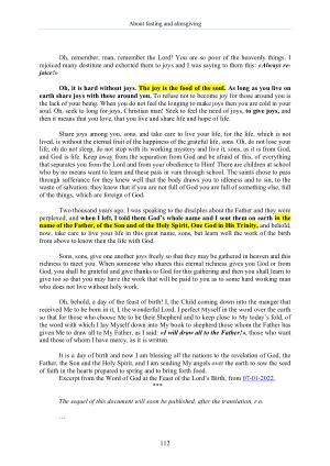Oh , remember , man , remember the Lord ! You are so poor of the heavenly things . I rejoiced many destitute and exhorted them to joys and I was saying to them this : « Always rejoice !»