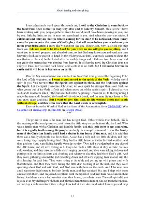 I sent a heavenly word upon My people and I told to the Christian to come back to the food from Eden so that he may stay alive and to sanctify himself . This is how I have been working with you , people gathered from the world , and I have been speaking to you , one by one , little by little , so that it may not seem hard to you . And when the way was wider , I called out and told you that the time is coming for the door to be narrowed , when it may come for you to enter the room of God ’ s glory that will come before you to welcome you in the great tribulation . I know like Me and not like you . I know , son , why I also ask this step from you . I do not want to let it be hard for you when no one will give you anything , and I want you to be well prepared and ahead of time , so that God may know you and send you then heavenly food , as he gave it to Israel in the wilderness , as then I expressly wanted to clean the one that were blessed , but he lusted after the earthly things and fell down from heaven and did not enjoy the manna that was coming from heaven . It is likewise now ; the Christian does not enjoy to learn how to come back home , and wants it as on earth , but I will make heaven on earth and it will be as in heaven so on earth .