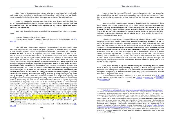 In the name of the Father and of the Son and of the Holy Spirit , the word is laying down in the manger . He is coming with the clouds as it is written into the Scriptures . Soon , soon , the body of My word is coming to prove out every word . Until that time , I come as word , for I am the Lord of the saints , and I am coming with them . They are those who are alive , like Me , as this is what I said through the Scriptures : « He who believes in Me has eternal life »; and again : « He who loses his life for Me will gain it », and My word remains forever and ever , together with its fulfillment . Amen .