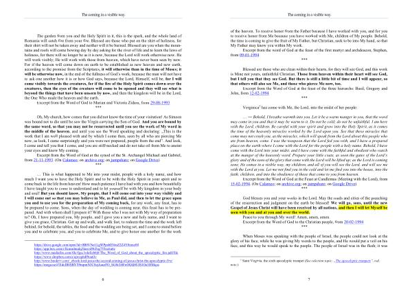 … ― Behold , I breathe warmth into you . Let it be a warm manger in you , that the word may come in you and that it may be warm to it . Do not be cold ; do not be unfaithful . I am here with the Lord , children . Be careful with your spirit and grow into the Holy Spirit , as it comes the time of the heavenly miracles worked by the Lord upon you . See that these miracles that come may not crush you , as the miracles , which will speak from the Lord about this people who ate from heaven , come . I was the teaspoon that the Lord fed you with , and I have a prepared place on the earth where I come with the Lord for the people with a holy name . Behold , I have come with the Lord into your midst , and I have come with the faithful and obedient who watch at the manger of the heavenly word . Prepare your little coats , as soon the gates of the Lord ’ s glory and of the sons of the glory that come with the Lord will be lifted up ; as the Lord is coming sons ; He comes in a visible way , my children , and all of you will see the Lord , and will see me with the Lord at you . Let me not find you in the cold and let me find you into the house , into the faith , children , and into the obedience of those that come to you from heaven .