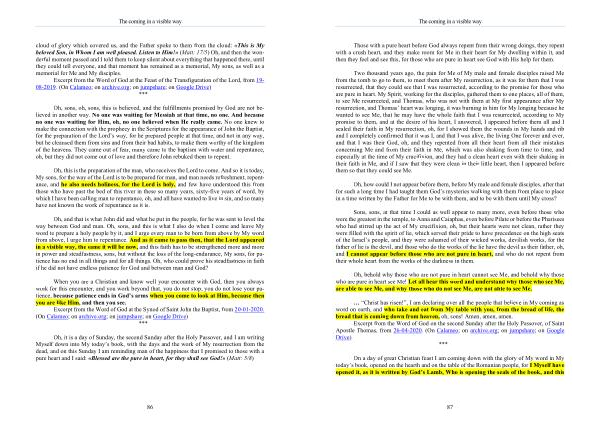 … “ Christ has risen !”, I am declaring over all the people that believe in My coming as word on earth , and who take and eat from My table with you , from the bread of life , the bread that is coming down from heaven , oh , sons ! Amen , amen , amen .
