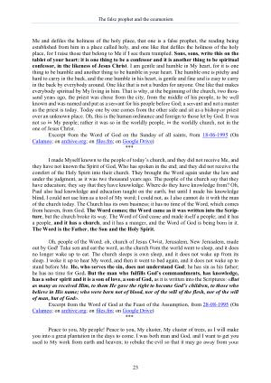 Me and defiles the holiness of the holy place , that one is a false prophet , the reading being established from him in a place called holy , and one like that defiles the holiness of the holy place , for I raise those that belong to Me if I see them trampled . Sons , sons , write this on the tablet of your heart : it is one thing to be a confessor and it is another thing to be spiritual confessor , in the likeness of Jesus Christ . I am gentle and humble in My heart , for it is one thing to be humble and another thing to be humble in your heart . The humble one is pitchy and hard to carry in the back , and the one humble in his heart , is gentle and fine and is easy to carry in the back by everybody around . One like that is not a burden for anyone . One like that makes everybody spiritual by My living in him . That is why , at the beginning of the church , two thousand years ago , the priest was chose from the city , from the middle of his people , to be well known and was named and put as a servant for his people before God ; a servant and not a master as the priest is today . Today one by one comes from the other side and sit as a bishop or priest over an unknown place . Oh , this is the human ordinance and foreign to those let by God . It was not so in My people ; rather it was so in the worldly people , in the worldly church , not in the one of Jesus Christ .