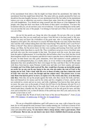 Do not let Me perish son . Keep Me alive My people . Do not give Me over to death during this time . But you are small and you know from Me how to become small in My arm , so that you may not know the wickedness of the great man , who is crucifying Me with the sharpness of his spirit . Oh , who knows to crucify Me better than the wise ones , better than those who read My wills without taking them into their inner being ? Who did the Lord ’ s crucifixion ? Pilate or Herod ? They did not understand who I was and where I came from . They knew their things , not Mine , but the priests knew for they were reading and learning from God , and still no one knew better than them to crucify Me . They would have not given even to God their seats and look who were the worst people in that time . The priests were the worst , the most astray from the path of righteousness . It is not that they did not believe that I was God , but they loved their kingdom which was for injustice and did not want to open the door so that their house may be seen , for their house was only gold , ornaments , silver and expensive vessels , gathered together in an unfrequented place , in a murky place , as it was written in the prophets . Oh , what damnation they have prophesied by their own tongue for they said that if they let Me prosper with those from heaven , many Romans would come and take over their country and nation . Certainly not ! For if they had received Me , they would have become an invincible people on earth , for no one can do any harm to the one who sits under the tent of God , to the strong one in God . Take a look with Me over to those of today who have taken the word of God : who were the worst , the foreign and the coldest ones ? The priests were . It was only them who had no power to leave , to rejoice over My word ; only they ; as in that time , only they . Only they stir up the people against the truth , only they crucify the truth , and here , they sold themselves for money and for the riches and for a kingdom of straw ; and the straw are scattered in a storm and are no more , and with a lightning from heaven they burn and are no more ; the same way as the people of Israel who fell slave to the Romans who put fire to it and scattered it on the whole face of the earth . But I took out of it those who believed and I turned made them a bundle into My lap and I told them to be the salt good for taste , and they were and worked the Lord , so that all nations of the earth may have the Lord , and you too , My people , to have him as well .
