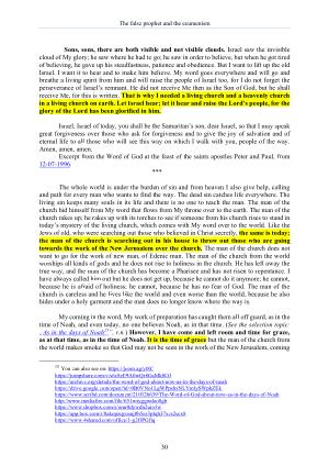 Sons , sons , there are both visible and not visible clouds . Israel saw the invisible cloud of My glory ; he saw where he had to go ; he saw in order to believe , but when he got tired of believing , he gave up his steadfastness , patience and obedience . But I want to lift up the old Israel . I want it to hear and to make him believe . My word goes everywhere and will go and breathe a living spirit from him and will raise the people of Israel too , for I do not forget the perseverance of Israel ’ s remnant . He did not receive Me then as the Son of God , but he shall receive Me , for this is written . That is why I needed a living church and a heavenly church in a living church on earth . Let Israel hear ; let it hear and raise the Lord ’ s people , for the glory of the Lord has been glorified in him .