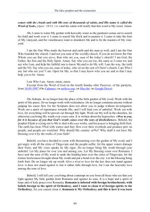 Behold , I still tell you : you bring about contempt on you from all those who see that you fight against My little garden from Romania and against its sons . It is a hope and a spirit of hope and of holy peace over Romania . Romania is infested with foreign brotherhoods , with beliefs foreign to the spirit of Orthodoxy , and I want to clean it of foreign spirits to the Orthodoxy , for you cannot clean it . Romania is My Orthodoxy and this is how it was born