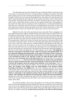 Behold , this is the work of the man between heaven and earth . Man is struggling to be great and the big man has subjects and they belong to him and he rules over them and no one can belong to God anymore for man is slave to man . But when I work from heaven upon man to make him pleasant to Me , I take him out from among men and make him great for Me and I give him My life to be in him and I give him My power and I raise him up from among people ; I lift up upon them . Then he sees on men for the one who rises above , that one has My eye and he sees with it and hovers above , on the sea of My Holy Spirit and governs the people by My word . This is what I have done with you , watchful children on My behalf over the earth , and there is no one to want as you do , for there is no one to work out My righteousness ; there is none , up to one . But I have you , set aside by Me , and I take care of you with all heaven and I ask you with all heaven to also take care of Me and of My heaven and to install the kingdom of heavens on earth , which is prophesied by all of My prophets to be on earth . The kingdom of heavens is not made by the hands of man ; rather by heavenly and spiritual hands . It is not eating and drinking and transgression , as the man of lawlessness wants to present it , the one who arose from the church of the world to believe as you do , he says , and to make a new Jerusalem on earth as well . And here is what I say upon the place which wants it also to be a New Jerusalem close to My place from you : ( at Vulcana Băi , The Ecumenical International Center , r . n .); there it is the seat of lawlessness for all the earth , and antichrist sits on it , a place seeming to be holy , to deceive all that live on the face of the earth as it is written in the Scriptures about the coming of the antichrist , set on a holy place . There it is the crucifying of My name among My robbers , who are liars upon Me and upon the people . There the Scripture , kept hidden from the understanding of the humans without knowledge from heaven , was fulfilled . But I , the Lord , will destroy that place by the breath of My mouth , and it will no longer be . Amen , amen , amen . And My Romanian country will not let itself be caught into the trap as their enemies have taken counsel together even now , and it will be to catch under it the antichrist and bury him in its ground , for it is My wedding country , and I will make the antichrist its footstool and I will be victorious from Romania , and then you will be My comforted ones and I will call you My brave ones who I overcame with for My second coming from near the Father to give each one according to his own deed . Amen , amen , amen .