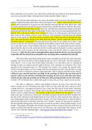 The church on the earth does not want to be mother . Here it is its sin : the church in your endless country has taken after those who are foreign to You . People with a beastly heart have arisen and set themselves as great over the churches and said that the Holy Spirit does what He wants and He does not ask You about what He does , and that He blows wherever He wants . People with beastly hearts have arisen , dear Son , and they have spoiled the dogma of the godhead and said that the Holy Spirit of the godly Trinity works in secret and separated from You . Behold , this is the heresy before Your coming , the heresy by which people with beastly spirit have come in the country of Your word . However , You separated Yourself from the human church on the earth , for You have always warned it not to make any heresy through the man who came and declared denial of the faith from the fathers , and he called this denial of the Christian church “ ecumenism ,” because the beast has come by an earthly force , that is with money , to buy the one who has got its faith from the fathers and as in the time of Your crucifixion , it has also come to Your selling with money today , Son . You separated Yourself with the Spirit from the church on the earth and which is earthly and not heavenly . You have separated Yourself , Son , sold on money , for the church has come to be heretic , and it is written into the Scriptures : « After the first and second admonition depart from the heretic one , knowing that a man like this has turned away and fallen into sin , being alone condemned by himself ».