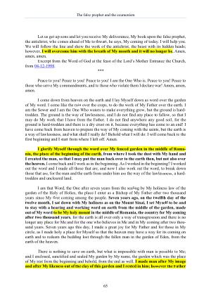 Let us get up sons and let you receive My deliverance , My book upon the false prophet , the antichrist , who comes ahead of Me to thwart , he says , My coming of today . I will help you . We will follow the line and show the work of the antichrist , the beast with its hidden heads ; however , I will overcome him with the breath of My mouth and it will no longer be . Amen , amen , amen .