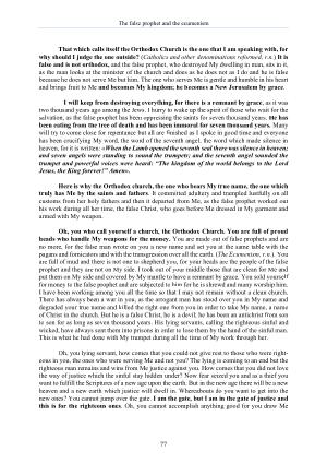 That which calls itself the Orthodox Church is the one that I am speaking with , for why should I judge the one outside ? ( Catholics and other denominations reformed , r . n .) It is false and is not orthodox , and the false prophet , who destroyed My dwelling in man , sits in it , as the man looks at the minister of the church and does as he does not as I do and he is false because he does not serve Me but him . The one who serves Me is gentle and humble in his heart and brings fruit to Me and becomes My kingdom ; he becomes a New Jerusalem by grace .