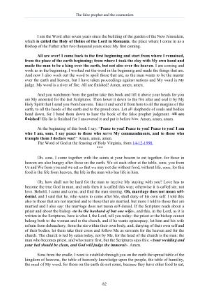 All are over ! I come back to the first beginning and start from where I remained , from the place of the earth beginning ; from where I took the clay with My own hand and made the man to be a king over the earth , but not also over the heaven . I am coming and work as in the beginning . I worked out the word in the beginning and made the things that are . And now I also work out the word to spoil those that are , as the man wants to be the master over the earth and heaven , but I have taken proceedings against nations and My word is My judge . My word is a river of fire . All are finished ! Amen , amen , amen .