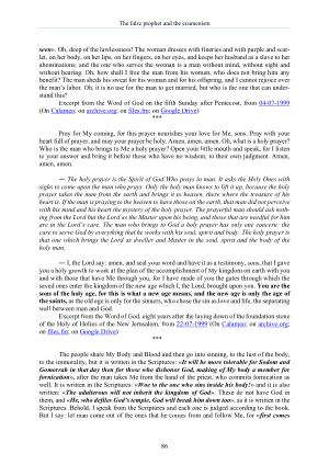 The people share My Body and Blood and then go into sinning , to the lust of the body , to the immorality , but it is written in the Scriptures : « It will be more tolerable for Sodom and Gomorrah in that day then for those who dishonor God , making of My body a member for fornication », after the man takes Me from the hand of the priest , who commits fornication as well . It is written in the Scriptures : « Woe to the one who sins inside his body !» and it is also written : « The adulterous will not inherit the kingdom of God ». These do not have God in them , and « He , who defiles God ’ s temple , God will break him down too », as it is written in the Scriptures . Behold , I speak from the Scriptures and each one is judged according to the book . But I say : let man come out of the ones that he comes from and follow Me , for « first comes