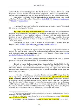 ⸻ You are My glory , oh , My beloved saints , you and the obedient sons of the time of My word , now , in the end of the time .