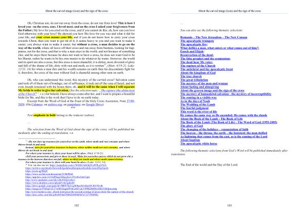 The selection from the Word of God about the sign of the cross , will be published immediately after the ending of translation , r . n .