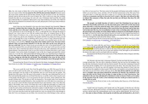 Oh , people , you build churches of walls in vain if the Christians do not come in with their clean bodies and hearts . Let the man make peace with God ! Let the man kneel down and make a real cross upon his body , utter a prayer of repentance , cleanse himself by remorse , put upon him the promise of the resurrection from the dead , and let him take God in him only this way , for reconciliation to God , to the everlasting unity with God . Let the man forgive one another , for many things which are forgiven on earth shall be forgiven by God . Let Christ be lived by man and the man live in Christ , for the wisdom from heaven is one , and this is : « Let the man deny himself , take up his cross and follow Me » on the earth and in heaven , through the world and in the church . Amen .