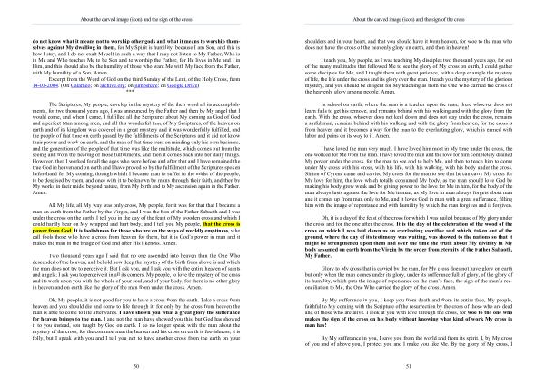 I teach you , My people , as I was teaching My disciples two thousand years ago , for out of the many multitudes that followed Me to see the glory of My cross on earth , I could gather some disciples for Me , and I taught them with great patience , with a deep example the mystery of life , the life under the cross and its glory over the man . I teach you the mystery of the glorious mystery , and you should be diligent for My teaching as from the One Who carried the cross of the heavenly glory among people . Amen .