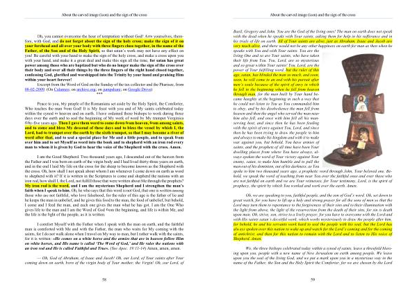 Basil , Gregory and John , You are the God of the living ones ! The man on earth does not speak with the dead when he speaks with Your saints , asking them for help in his sufferance and in his trials of life on earth . All of Your saints are alive , just as Abraham , Isaac and Jacob are very much alive , and there would not be any other happiness on earth for man as then when he speaks with You and with Your saints . You are the living One and so are Your saints , who have taken their life from You . You , Lord , are so mysterious and so great within Your saints ! You , Lord , are the power of Your fulfilling word , but the ruler of this age , satan , has blinded the man so much , and soon , soon , he will come to an end with his pursuit after men ’ s souls because of the spirit of envy in which he fell in the beginning when he fell from heaven through man , for the man built by Your hand became haughty at the beginning in such a way that he could not listen to You as You commanded him to obey , and by his disobedience the man fell from heaven and then the angel who served the man near him also fell , and once with him fell all his manserving host , and since then he has been feeding with the spirit of envy against You , Lord , and since then he has been trying to draw the people to him and always to make his kingdom and with it to make war against you , but behold , You have armies of saints , and the prophets of all time have been Your dwelling places from where You have always , always spoken the word of Your victory against Your enemy , satan , to make him humble and to pull the man out of his dominion , out of his darkness , as You spoke to him two thousand years ago , a prophetic word through John , Your beloved one . Behold , we speak the word of teaching from near You over the faithful ones and over those who are not faithful on earth and we are Your witnesses , for Your testimony , Lord , is the spirit of prophecy , the spirit by which You worked and work over the earth . Amen .