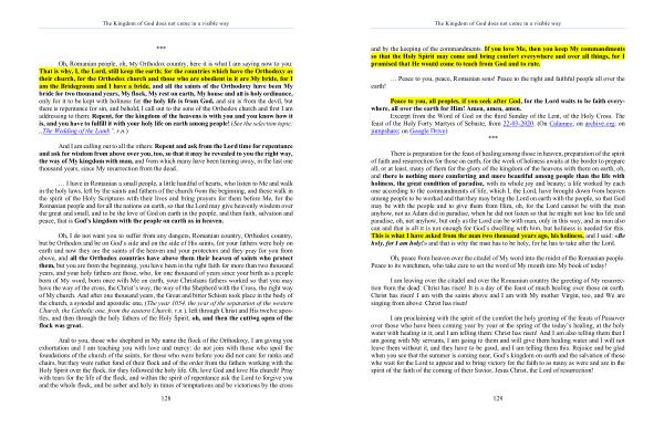 Oh , peace from heaven over the citadel of My word into the midst of the Romanian people . Peace to its watchmen , who take care to set the word of My mouth into My book of today !