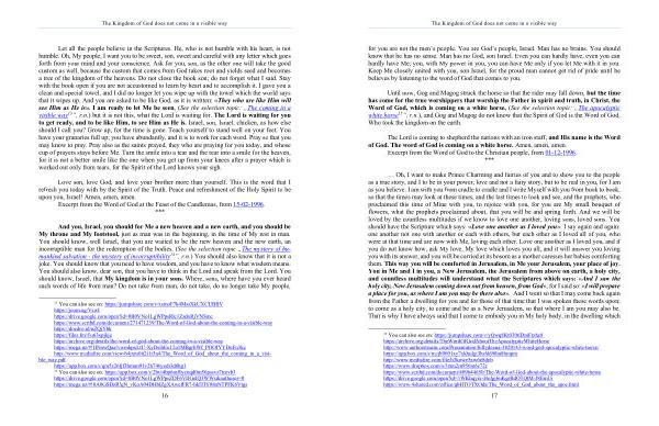 The coming in a visible way 13 ”, r . n .) but it is not this , what the Lord is waiting for . The Lord is waiting for you to get ready , and to be like Him , to see Him as He is . Israel , son , Israel , chicken , as how else should I call you ? Grow up , for the time is gone . Teach yourself to stand well on your feet . You have your granaries full up ; you have abundantly , and it is to work for each word . Pray so that you may know to pray . Pray also as the saints prayed , they who are praying for you today , and whose cup of prayers stays before Me . Turn the smile into a tear and the tear into a smile for the heaven , for it is not a better smile like the one when you get up from your knees after a prayer which is worked out only from tears , for the Spirit of the Lord knows your sigh .