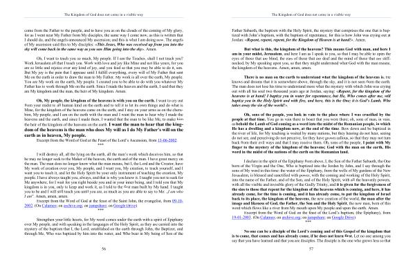 But what is this , the kingdom of the heavens ? This means God with man , and here I am in your midst , Jerusalem , and here I am as I speak to you , so that I may be able to open the eyes of those that are blind , the ears of those that are deaf and the mind of those that are stiffnecked , by My speaking upon you , so that they might understand what God with the man means , the kingdom of the heavens . Amen , amen , amen .